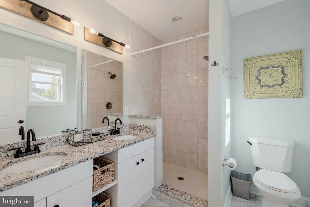 This home truly offers something for everyone! From the outside, the charming wraparound porch and gorgeous landscaping contribute to the maximal curb appeal of the property. Inside, the light-filled dwelling has stunning hardwood floors throughout, with an impressive stairway leading upstairs and downstairs from the main level. This level has a full bedroom and full bathroom near the back of the home - perfect for guests, in-laws, or an Au Pair suite! The gourmet kitchen, with stainless steel appliances and granite countertops, offers everything a chef could want or need, with the added benefit of wonderful entertainment flow to the welcoming and open living room and dining area. Upstairs, three bedrooms and two full bathrooms round out the cozy and functional living space. The primary bedroom boasts a large closet and a beautifully appointed en-suite bathroom with double sinks and a walk-in shower, while the nearby laundry offers the convenience of always having the washer and dryer close at hand. The lower level features a partially-finished room with a large storage closet, egress windows, and a walk-out stairway - ideal for a spacious office, exercise area, home theater, or playroom. The backyard oasis, magnificently landscaped with native plants, also showcases a high-end composite deck and pergola, stone fire pit, and raised garden beds.